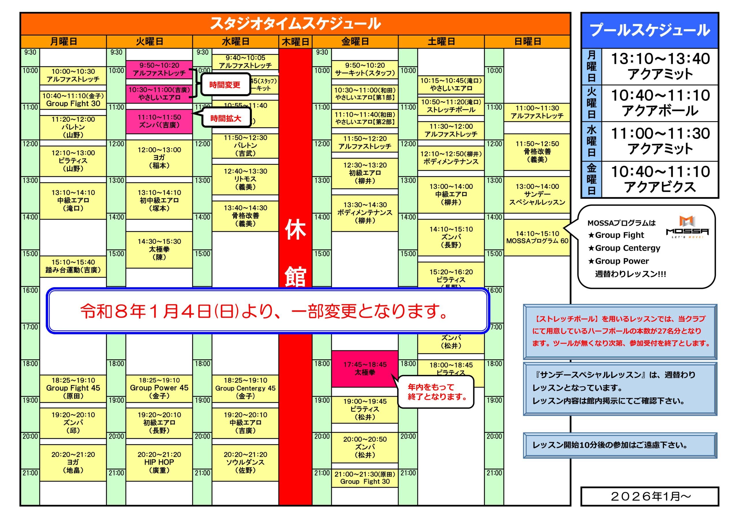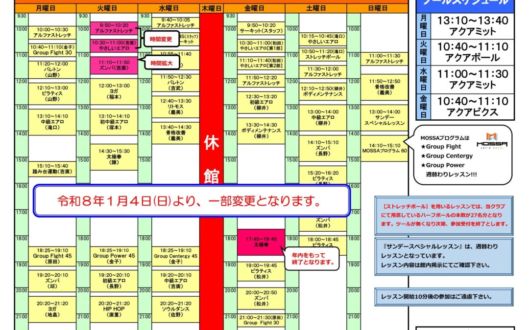 令和8年1月4日より スタジオタイムスケジュール一部変更のお知らせ
