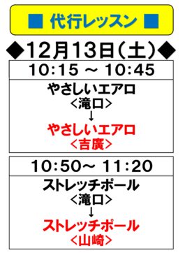 2月14日(土) 代行レッスンのご案内