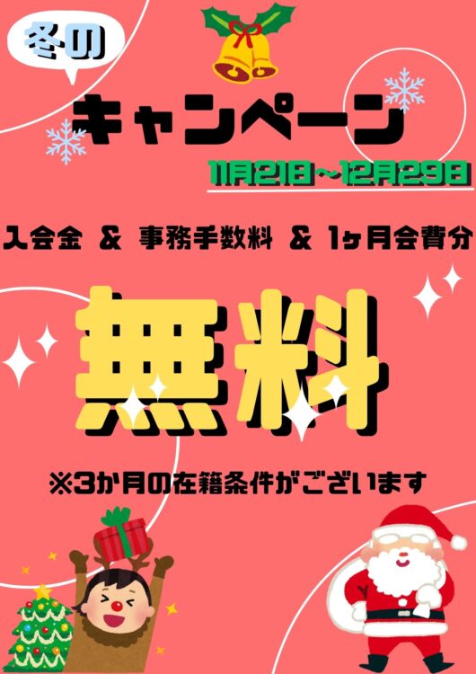 寒い時期に室内で体を動かしたい人や、年末年始つい怠けてしまう人こそこのキャンペーンで入会して体を動かしましょう!