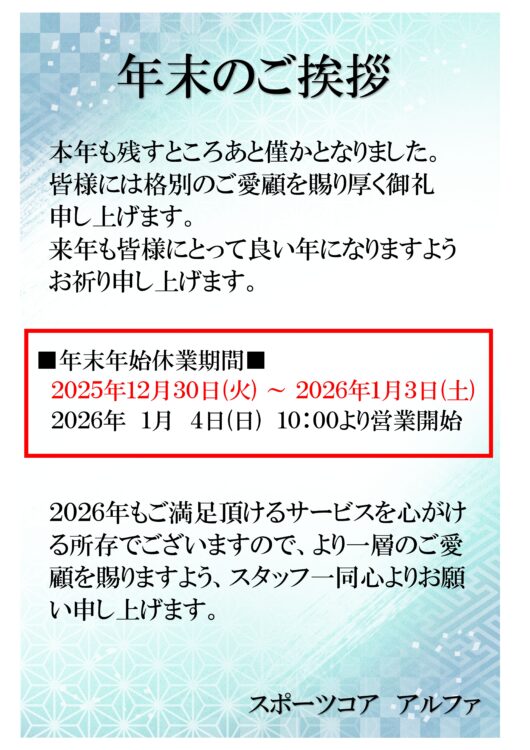 • 1月9日(火) 代行レッスンのご案内 2025年12月24日