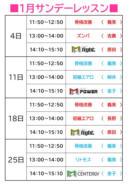 1月13日&27日(火) 代行レッスンのご案内 ※時間変更有