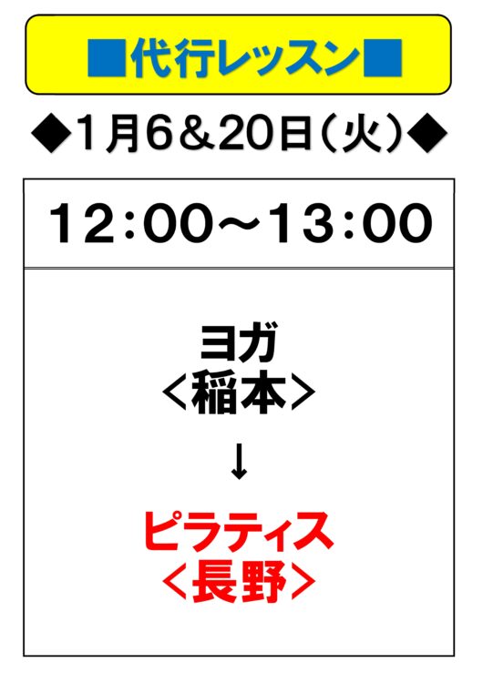 1月13日&27日(火) 代行レッスンのご案内 ※時間変更有