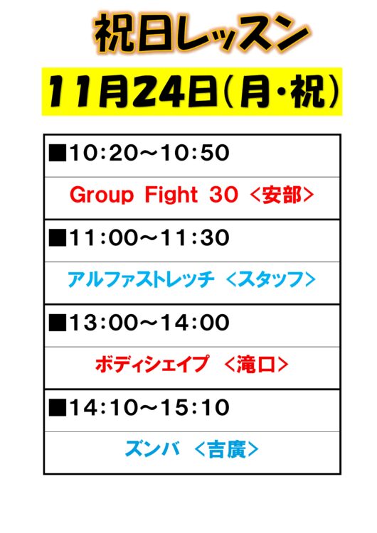 11月 3日&24日 祝日レッスンのご案内