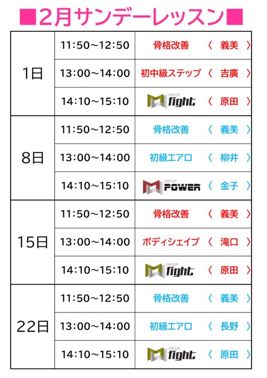 2月サンデーレッスンのご案内