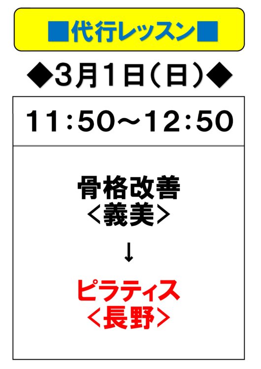 3月1日(日) 代行レッスンのご案内