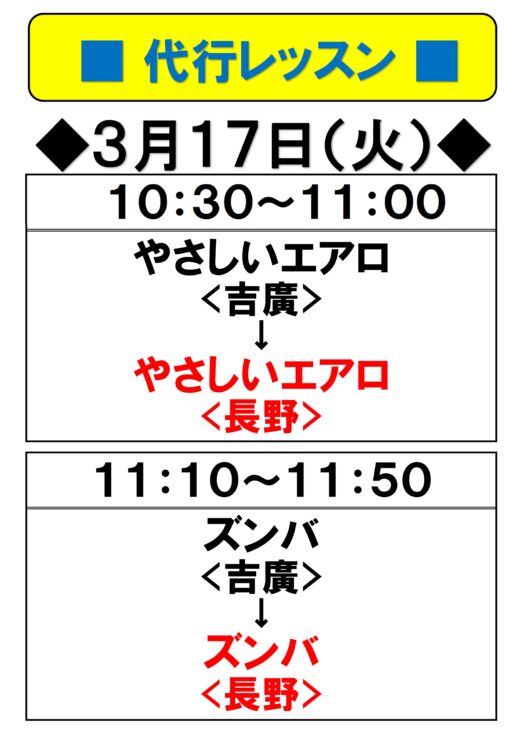 3月17日(火) 代行レッスンのご案内