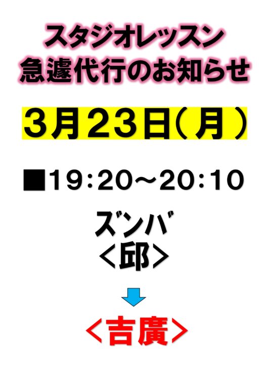 R8.4月より スタジオレッスン一部変更のお知らせ