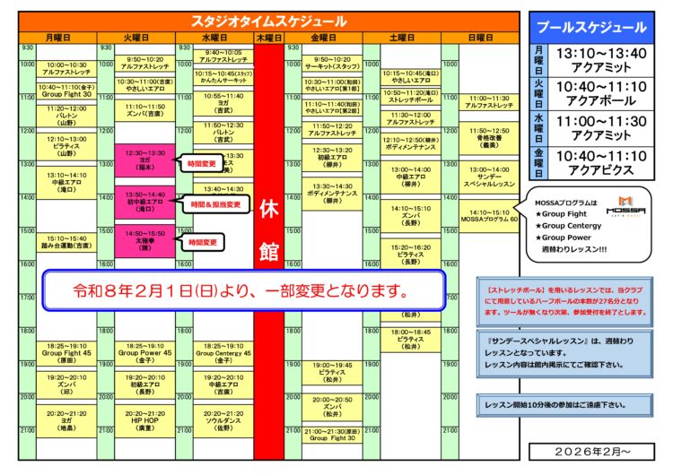 R8.2月1日より スタジオタイムスケジュール一部変更のお知らせ